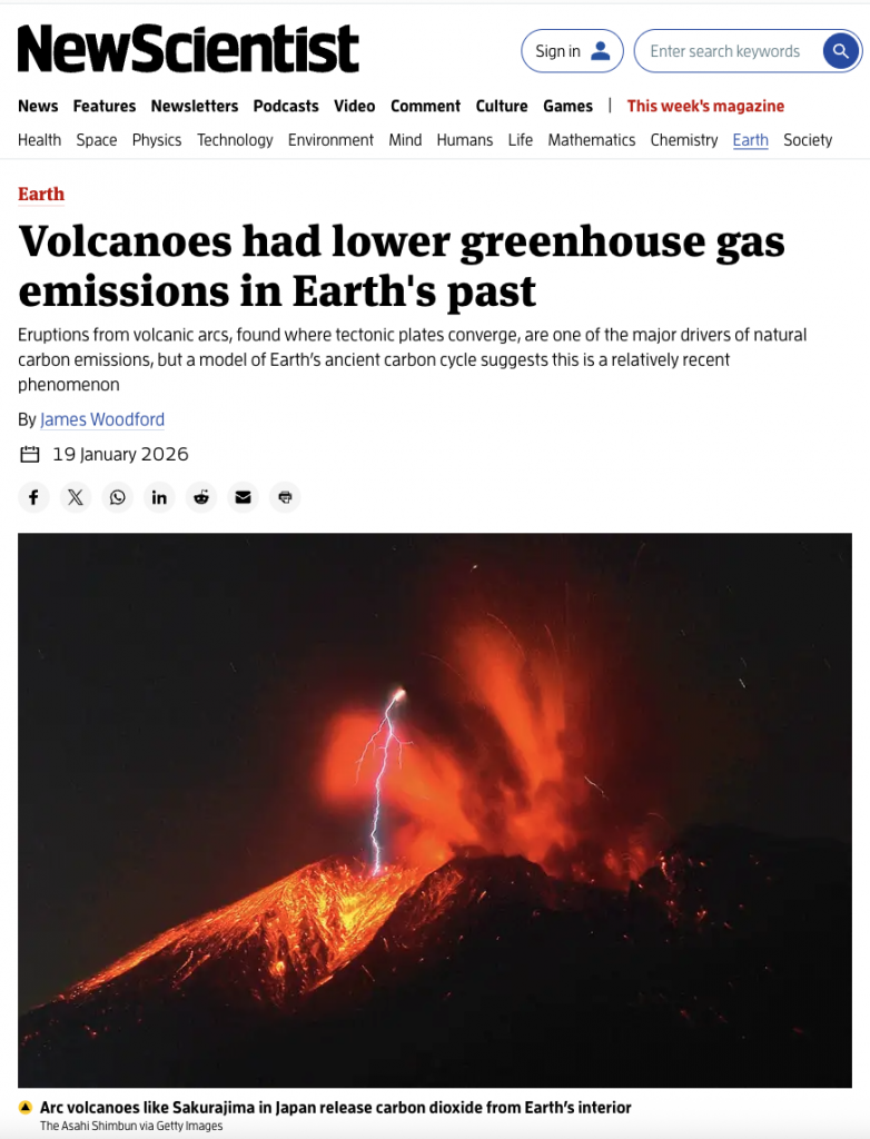 Volcanic arcs, the giant chains of erupting peaks in places like Japan, can play a part in this by releasing CO2 from Earth’s interior. But modelling research led by Ben Mather at the University of Melbourne, Australia, suggests they only became the dominant source of carbon emissions towards the end of the age of the dinosaurs, around 100 million years ago.